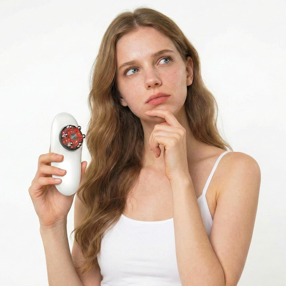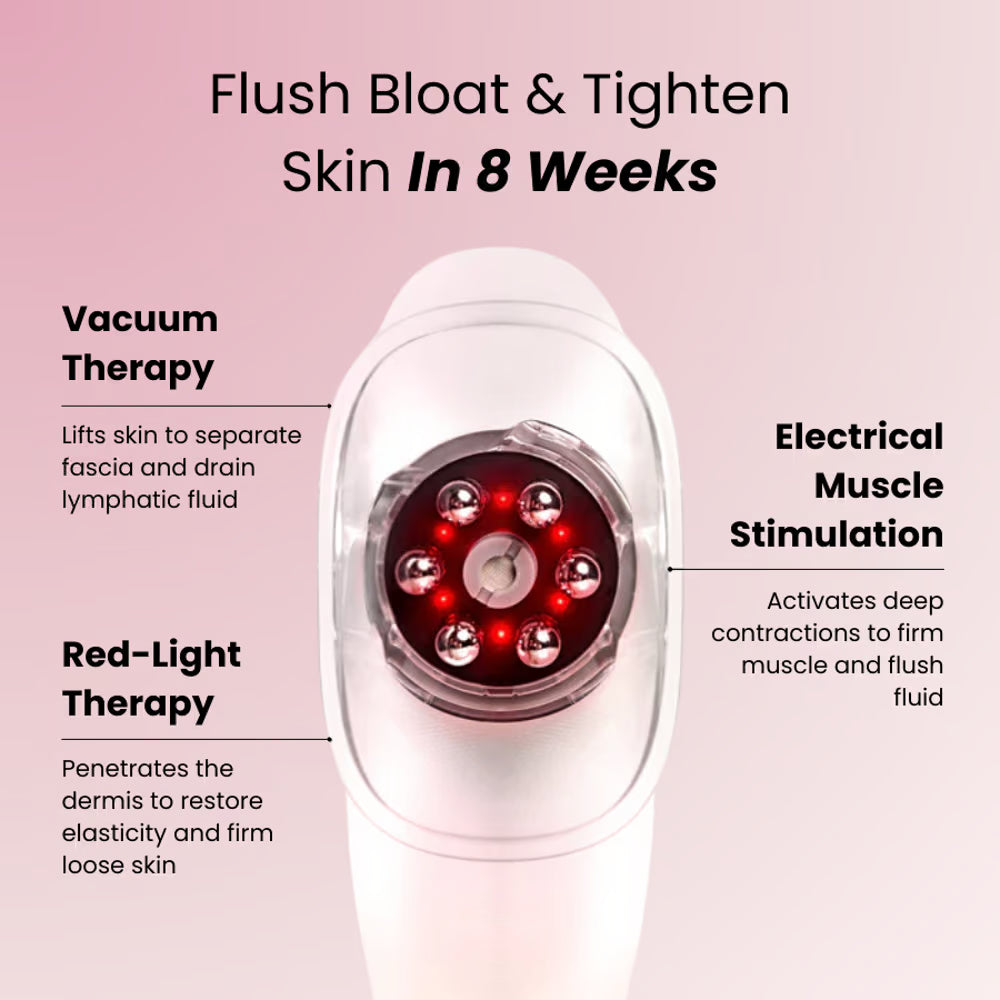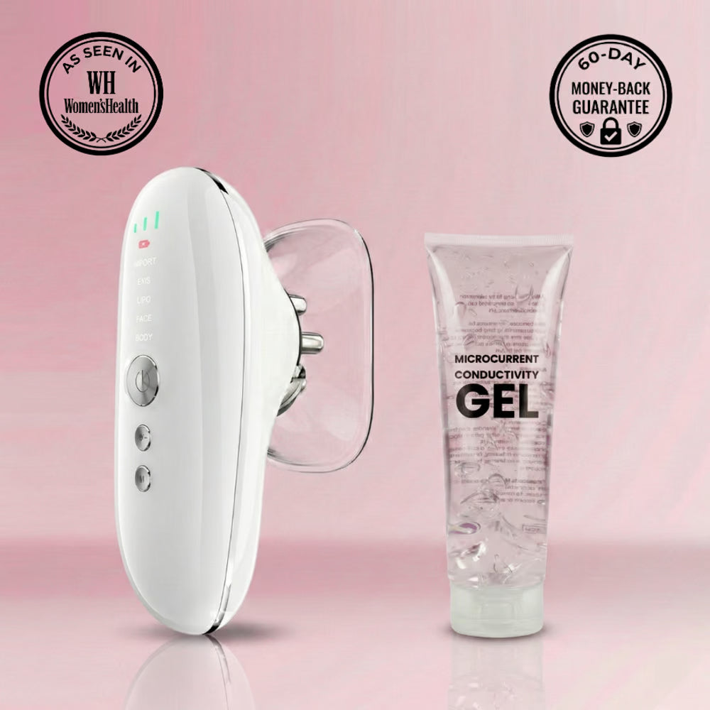 LymphaTone combines three clinical-grade modalities into one at-home device: vacuum therapy to physically separate stuck fascia from muscle, EMS to activate lymphatic drainage, and 630nm red light to stimulate collagen production. Designed for women whose "problem areas" survived diet and exercise, this device targets the structural issue—not the calorie. Use for 5 minutes per area on stomach, thighs, arms, or face. Includes charging cable and user manual. Conductive gel recommended for optimal suction (sold separately or in bundle).