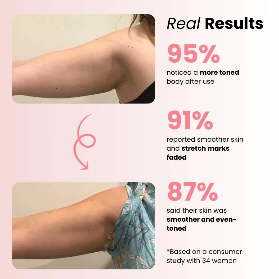 My stretch marks have faded so much. I didn't expect this, but my skin looks healthier and more even. I'm so happy with how firm and smooth everything feels.